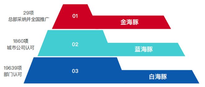 创新激励上,万物云“海豚行动”构建三级采纳机制,29 项“金海豚”方案全国推广,1860 项“蓝海豚”方案城市落地,19639 项“白海豚”方案部门执行,激活基层创新活力。